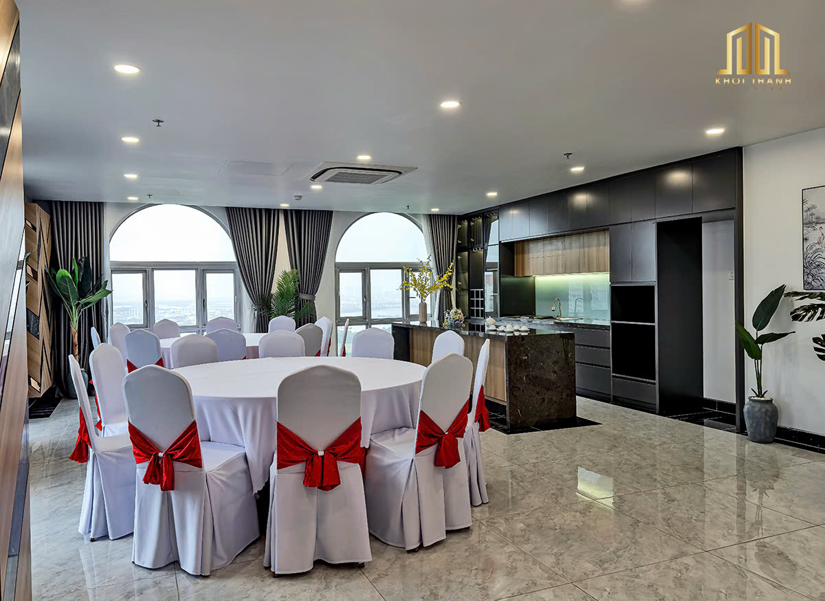 • Sàn hoàn thiện cao cấp, trần thạch cao và hệ đèn downlight sang trọng.