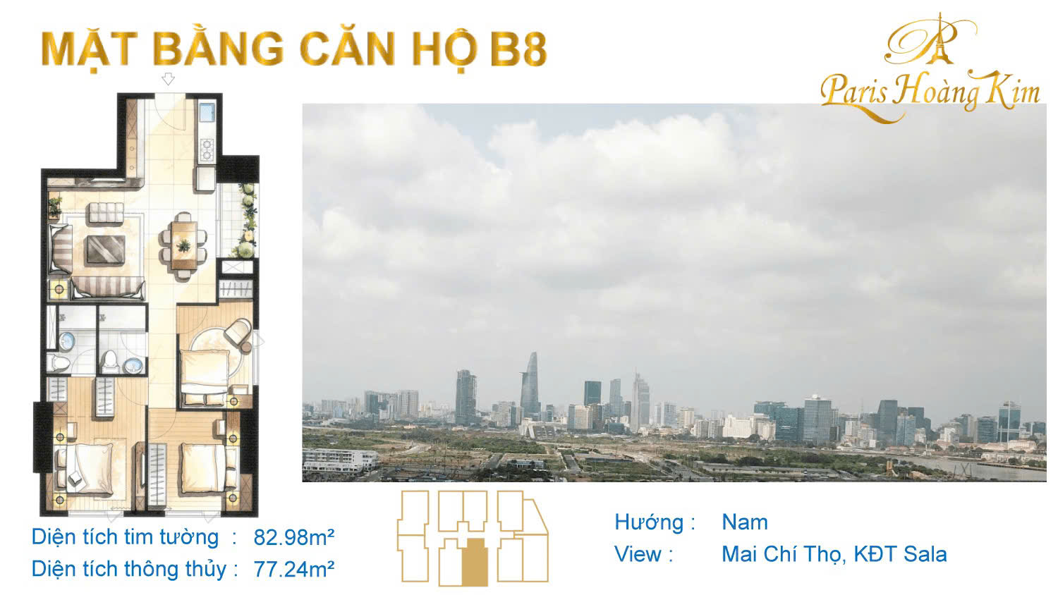 Căn hộ Paris Hoàng Kim sở hữu vị trí vô cùng đắc địa, liền kề Trung tâm Tài chính Quốc tế Thủ Thiêm, chỉ 2 km đến khu đô thị Sala và 5 phút di chuyển vào Quận 1. Đây chính là lợi thế nổi bật nhất tạo nên giá trị bền vững của dự án. Paris Hoàng Kim đã hoàn thiện và bàn giao trong năm 2023, hiện cư dân về ở và khai thác cho thuê đạt hơn 80%. Pháp lý minh bạch, chủ đầu tư đã thông báo cư dân chuẩn bị hồ sơ để tiến hành cấp sổ hồng.