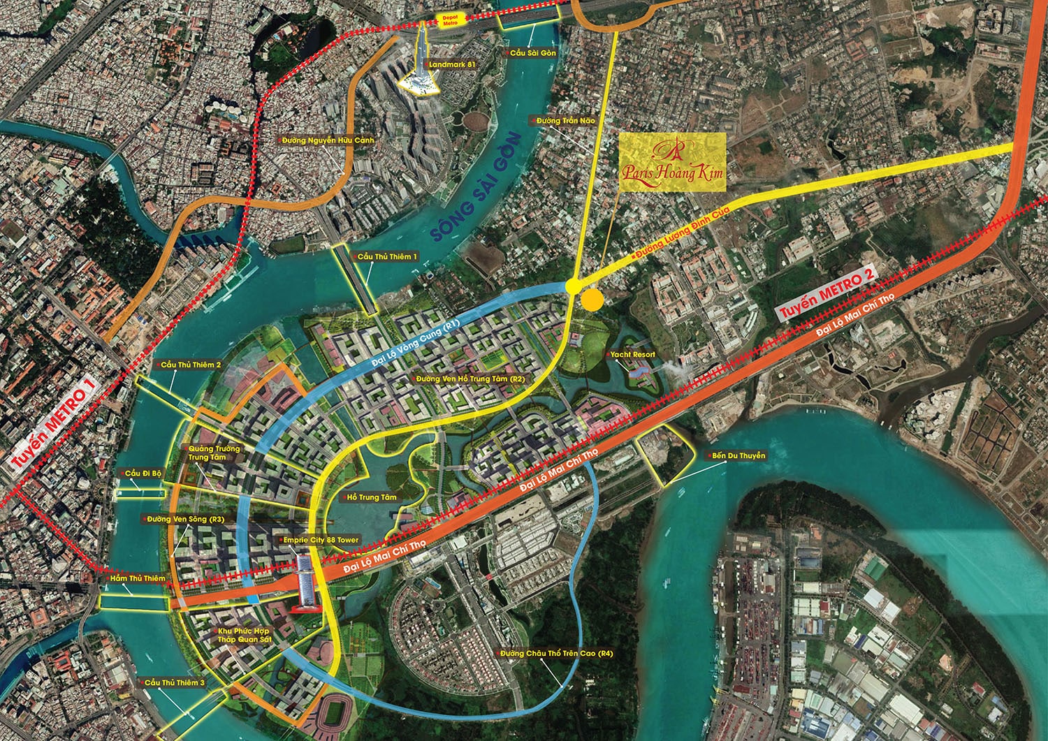• Liền kề các trục giao thông huyết mạch: Đại lộ Vòng Cung, Mai Chí Thọ, đường ven sông