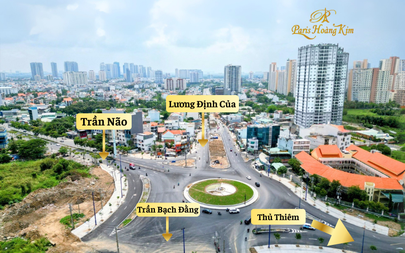 Căn hộ Paris Hoàng Kim có địa chỉ tại 31 Đường số 1, Phường An Khánh, TP.HCM, nằm ngay góc đường Trần Não – Lương Đình Của, Quận 2. Với vị trí liền kề khu đô thị Thủ Thiêm, khu đô thị An Phú An Khánh và Thạnh Mỹ Lợi, dự án trở thành điểm kết nối lý tưởng đến các khu vực trung tâm và vùng phụ cận. Từ Paris Hoàng Kim, bạn dễ dàng di chuyển như sau: