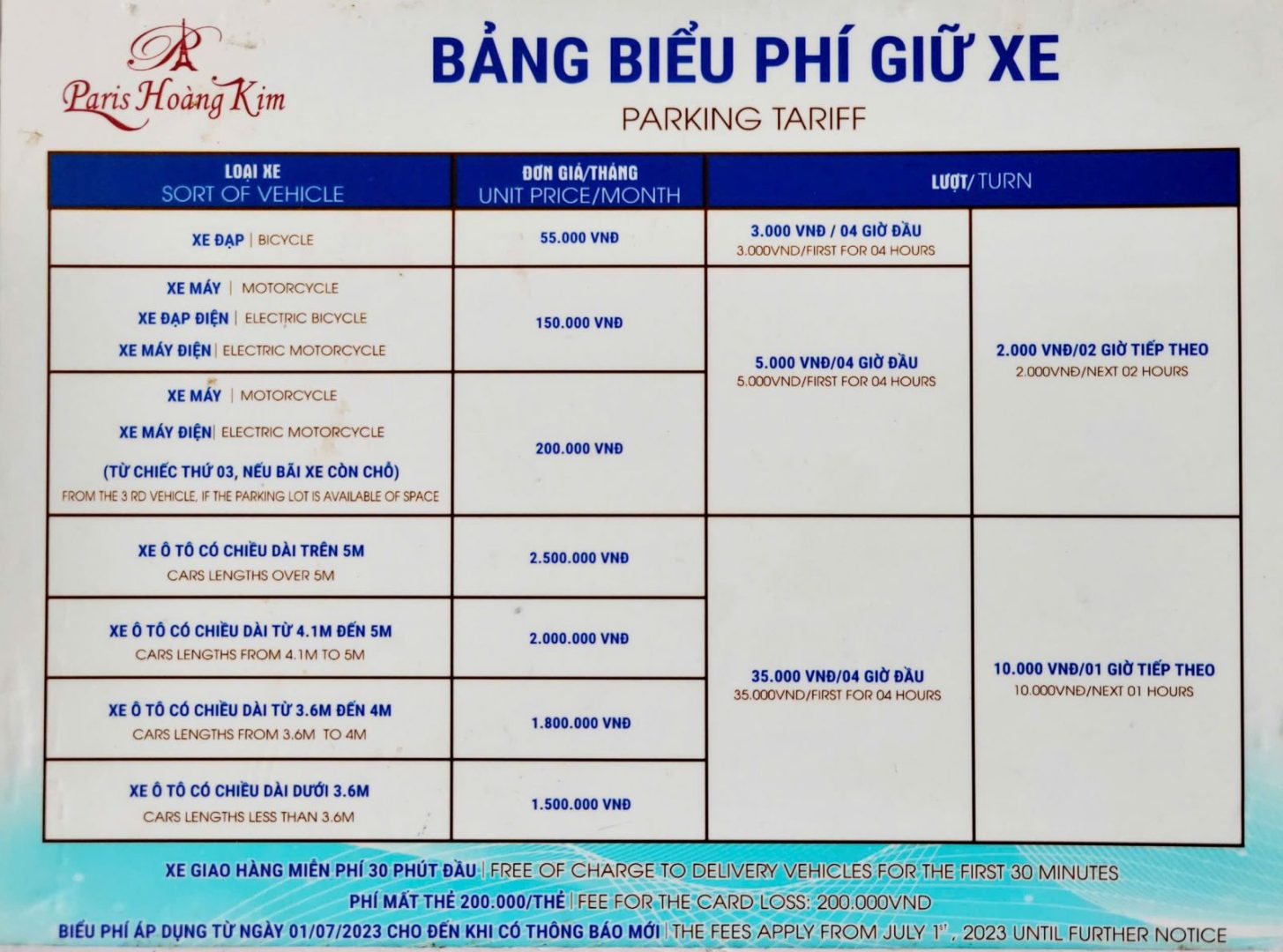 • Ô tô: 1,5 – 2,5 triệu/ chiếc/ tháng.